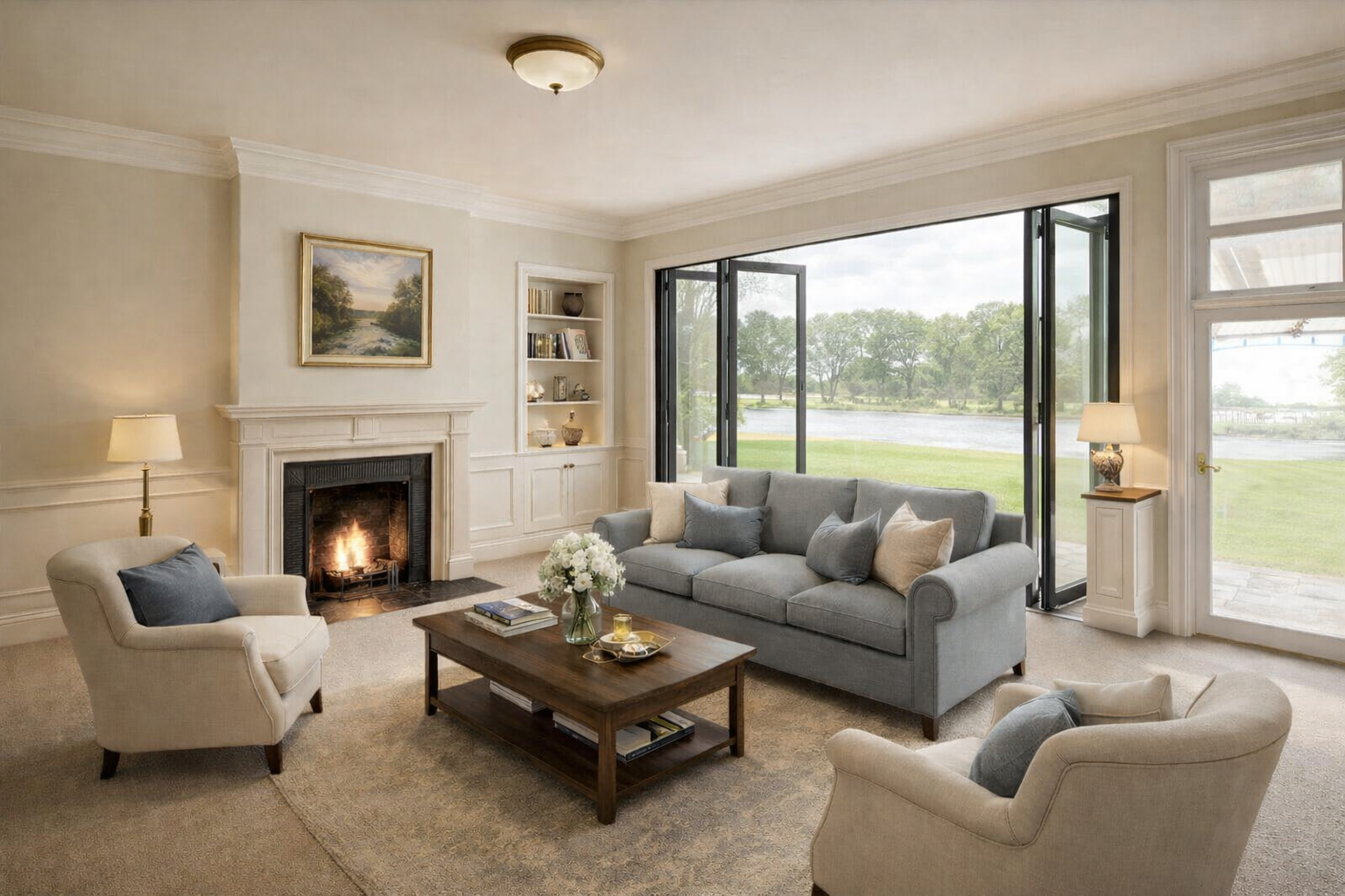 Comfortable living room river with views